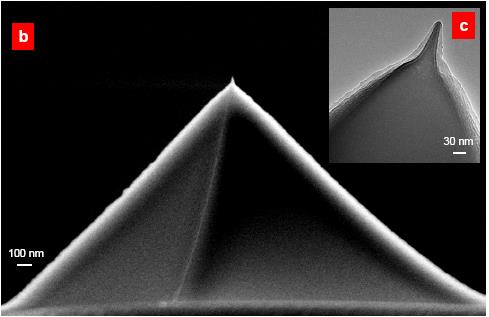 3D Si-O-C tip synthesized for nano-fabrication (in nano-tribology studies showed 3000 times greater wear resistance than Si tips).